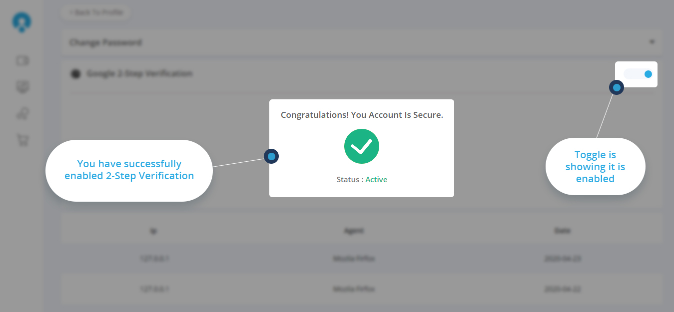- Here you go! your 2FA setup is complete.